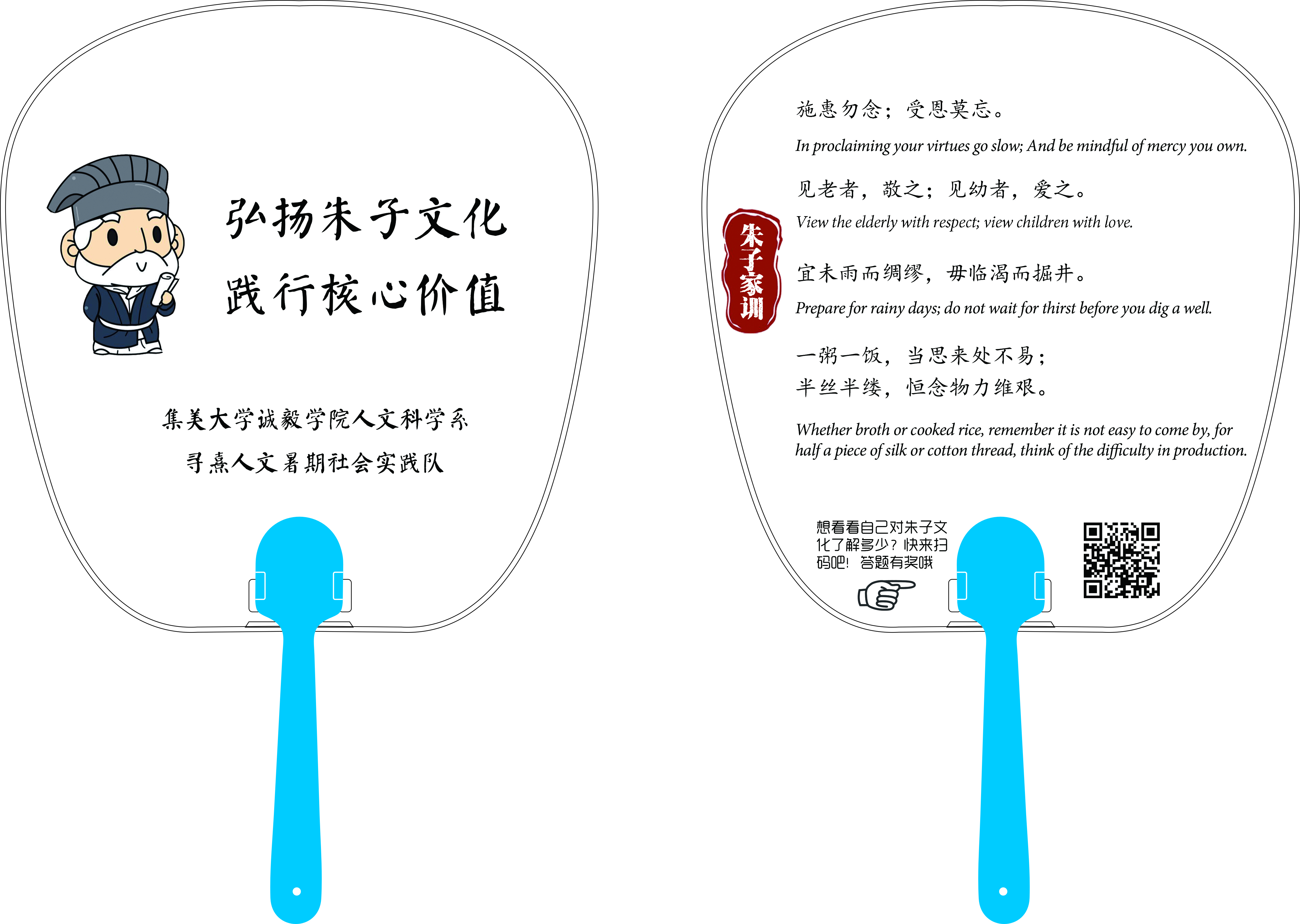 | “寻熹人文”实践队设计制作的朱子家训塑料扇 |