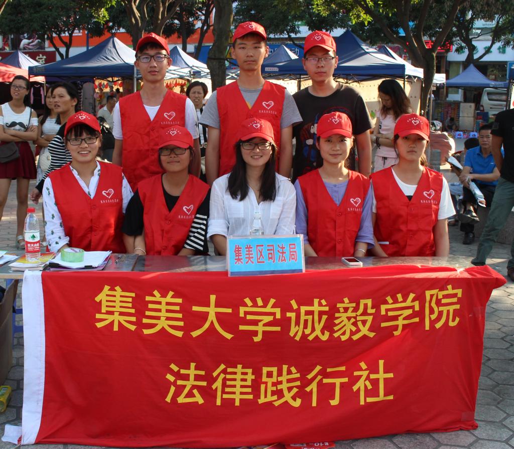 10月17日下午,我院法律践行社普法志愿者会同集美区司法局依法治区办公室参加了在集美北区广场开展的2015集美区社科知识进社区系列宣讲活动。本活动由中共集美区委宣传部、集美区社会科学界联合会主办,目的旨在宣传社会主义核心价值观,宣传法治城市建设,宣传《福建省社会科学普及条例》,解决群众疑难问题,化解社会矛盾,促进社会和谐,缔造美丽厦门。