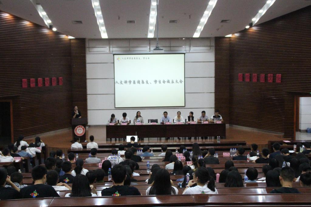 9月14日下午,我系举办十一届人文科学系团总支、学生会成立大会。在“倡导人文关怀,引领校园文化”这一人文宗旨的指导下,人文科学系党总支书记涂静萍、系办公室主任靖耀、团总支书记丁小昀,辅导员马妮妮、陈娟出席此次大会。第十届、十一届学生会的主要干部和新任干事列席大会。
