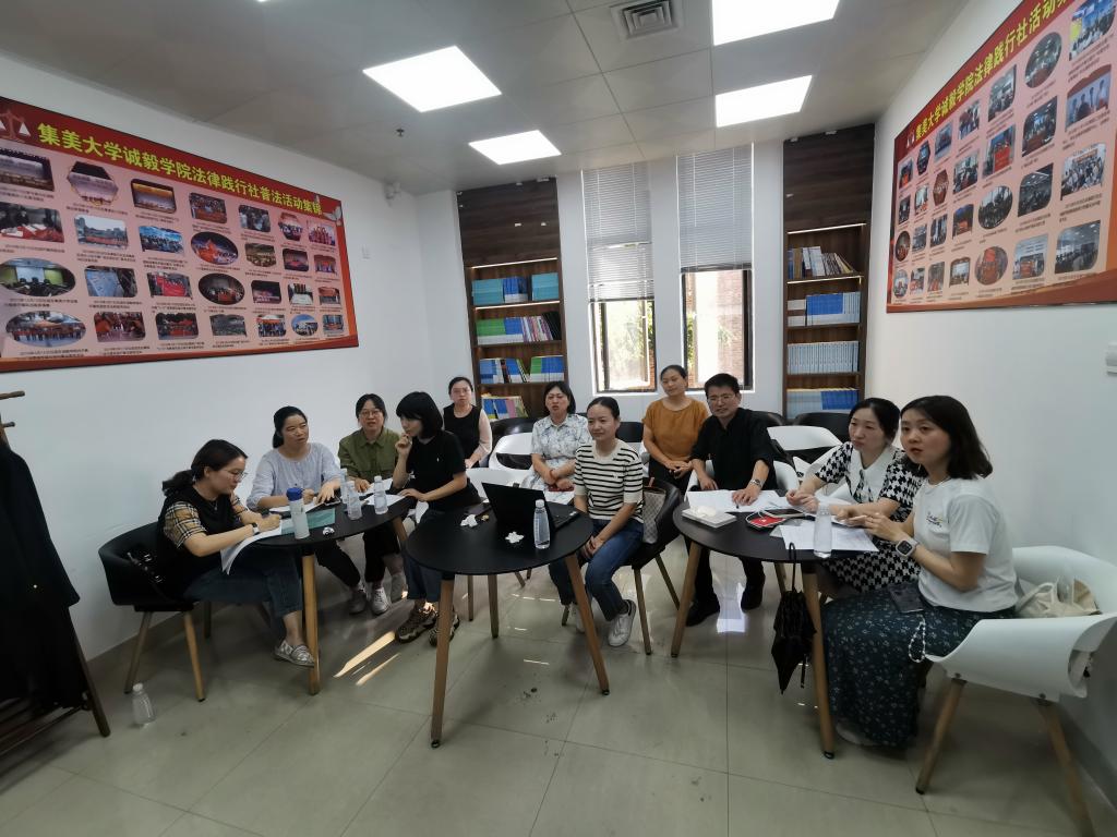 法学教研室和中文教研室分别在“蒲公英”普法联盟基地和景祺楼14楼会议室开展教研活动,每位教师说课10分钟,教研室全体成员就说课结构、各环节要素、教学内容提升和方法创新等开展了广泛而深入的交流。教研活动中,教师都做了精心的准备,从说课教案的编写到课件的制作,从教学设计到特色凝练,都精益求精。教师们在树立“以学生为中心”的教学理念、深化OBE教育理论学习、强化全过程教学管理实践等方面,都有实际的感悟与收获。