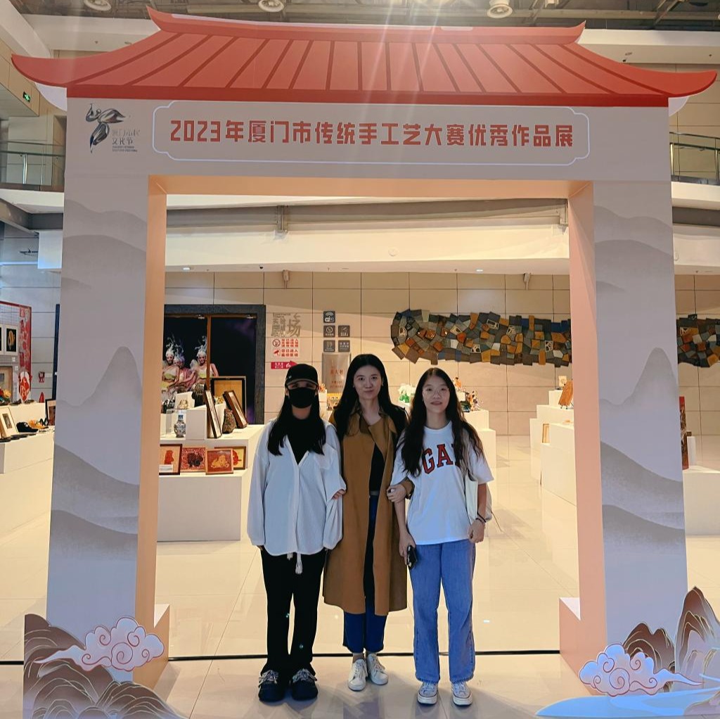 据了解,此次优秀作品展将在厦门市文化馆展至11月5日。长期以来,我系《非遗创意手作工坊》课程以弘扬中华传统文化精神为己任,独创“文化基础知识+技艺实操+展览实践”模式,使学生深入学习非遗文化知识,掌握不同类别的非遗技艺,利用非遗资源设计、制作手工文创作品,并通过展览组织与策划实现成果的作品化呈现。该课程自开设以来,不仅提高了学生的实践能力,培养了学生的文化创意思维,也收到了良好的社会效益,先后得到学习强国、厦门日报、厦门晚报、海峡导报、海西晨报、厦门综合广播等媒体的报道。我系积极探索校企协同育人、专创融合育人模式,为培养创新型、应用型、复合型的文化创意产业人才,推动厦门市传统工艺的保护传承与创新发展作出持续贡献。