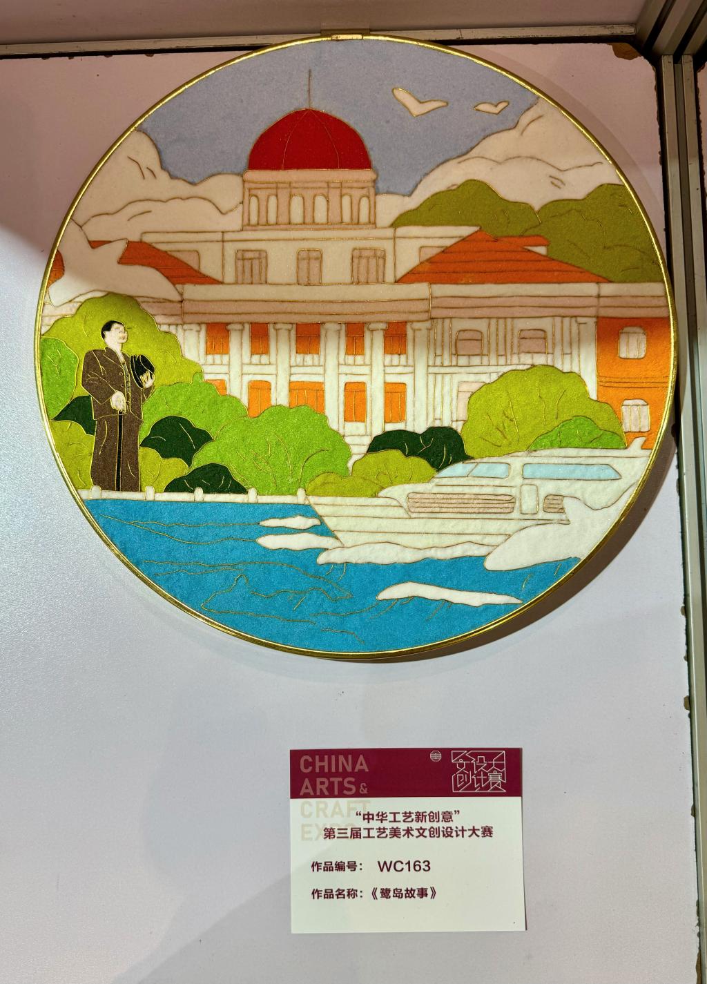 5月10日,第四届中国工艺美术博览会暨第三届工艺美术文创设计大赛在福州海峡国际会展中心隆重举办。我系汉语言文学专业(文创方向)2021级学生刘佳琪创作的掐丝珐琅作品《鹭岛故事》亮相博览会现场。刘佳琪表示,作品构思是基于陈嘉庚先生诞辰150周年的契机。在内容上,作品以嘉庚精神和厦门鼓浪屿为设计灵感,以嘉庚先生、八卦楼、白鹭、海浪、游艇等为设计元素,旨在通过陈嘉庚先生与鼓浪屿建筑的结合,述说鹭岛故事,弘扬嘉庚精神。在作品制作技艺上,结合专业课程《非遗创意手作工坊》所学,在专业教师王颖的指导下,以传统非遗技艺——掐丝珐琅为载体进行装饰化的艺术创作,采用掐丝、点蓝等工艺技法制作。
