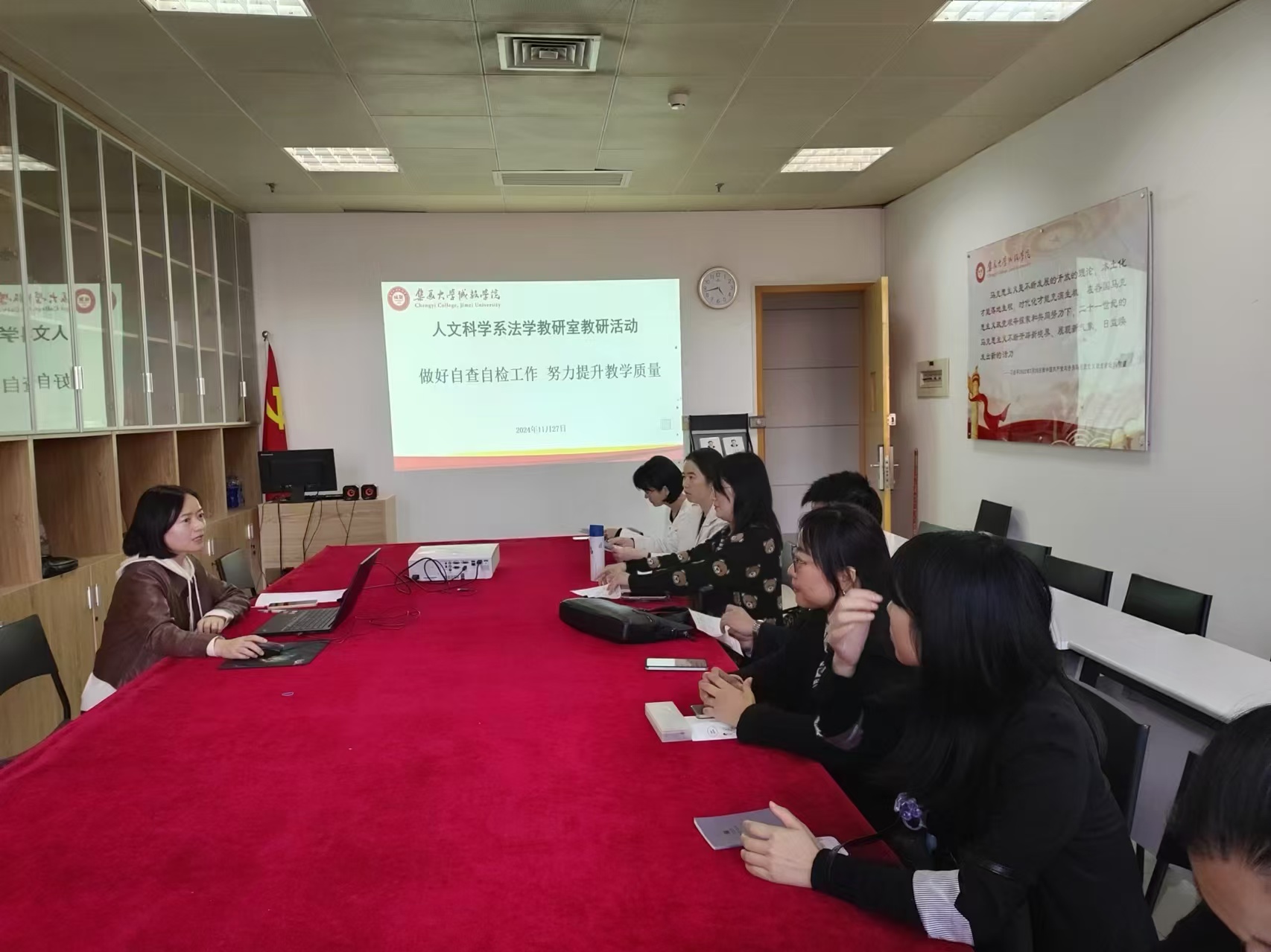 为严格贯彻落实学院《关于进一步做好常态化教研工作的通知》精神,11月27日下午,人文科学系汉语言文学教研室和法学教研室分别召开教研室工作会议,传达通知精神,并开展相关教研活动。两教研室就教研活动内容进行了任务分解,就教学计划落实、教学质量提升、科创工作的开展等进行了讨论;同时,针对教学督导在档案检查、试卷检查和论文检查中发现并反馈的问题进行复盘,开展自查自检,分析问题并提出解决方案。