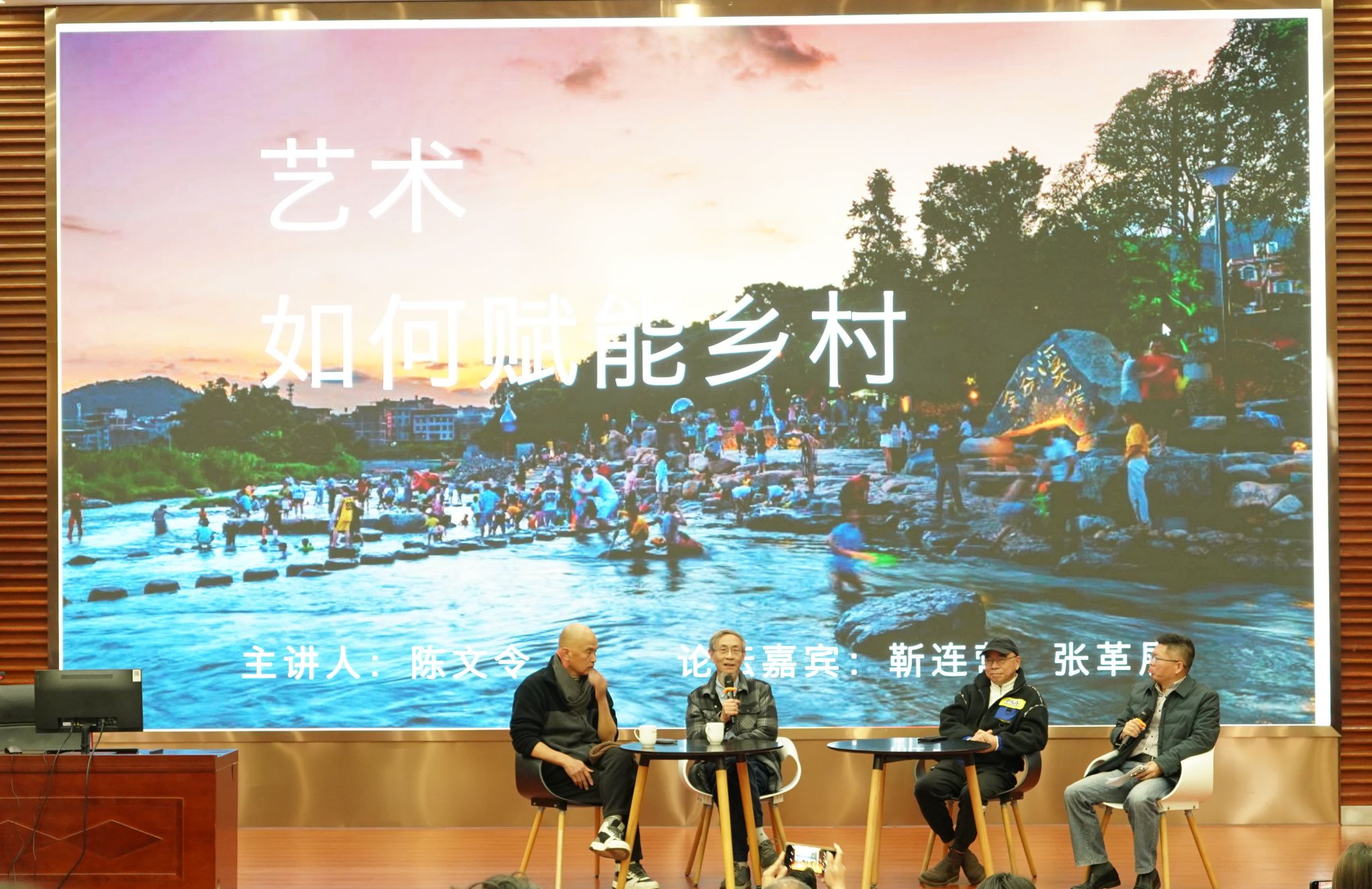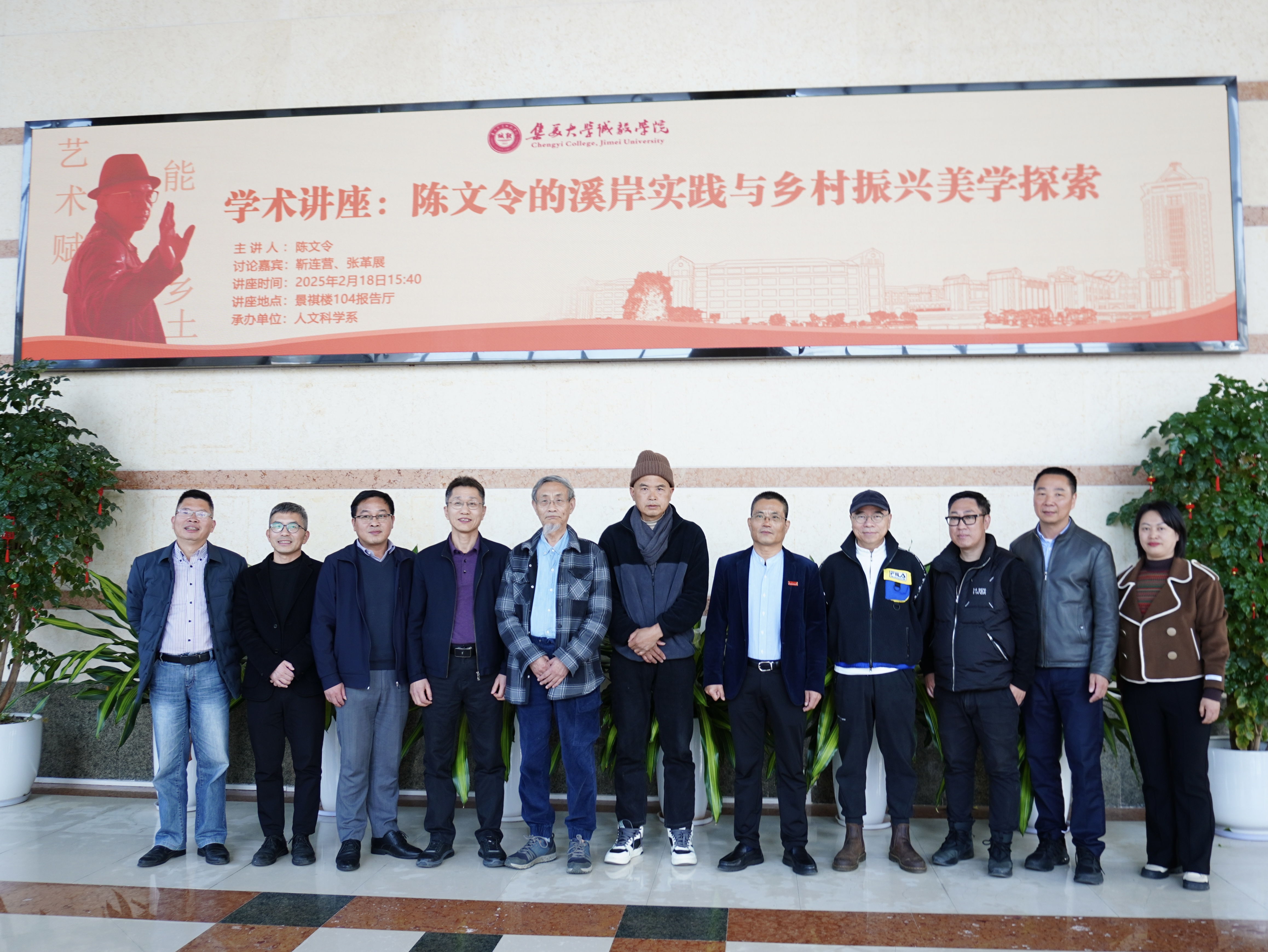 2月18日,我系在景祺楼104报告厅举办“陈文令的溪岸实践与乡村振兴美学探索”主题讲座,邀请当代著名艺术家、雕塑家陈文令为主讲嘉宾,中央美术学院人文学院教授靳连营、中国美术学院访问学者张革展为讨论嘉宾,共同探索“艺术如何为乡土赋能”。集美大学诚毅学院党委副书记颜承志、副院长陈光田,美术学院党委书记王高尧、院长汪晓东及相关共建单位负责人出席讲座,汉语言文学专业全体师生到场参加。讲座由系党委书记许弘明主持。