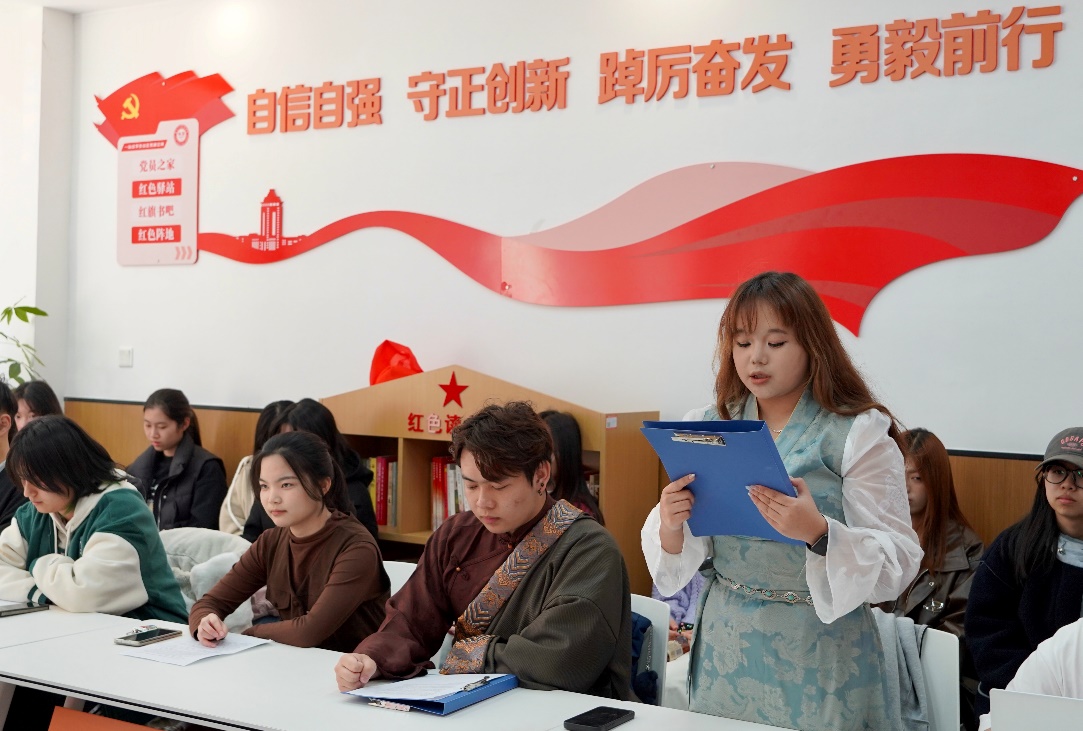 为深入贯彻落实党的民族政策,强化党建引领作用,促进各民族文化交流互鉴,激发大学生对多元民族文化的探索热情,厚植爱国主义情怀,3月19日,人文科学系在学生社区“一站式”党团活动室举办“党旗领航,福籽同心”人文故事分享会。系党委书记许弘明,辅导员王云、郑芬安及部分学生党员、入党积极分子、少数民族学生代表参加。活动由系党委组织员陈琪主持。
