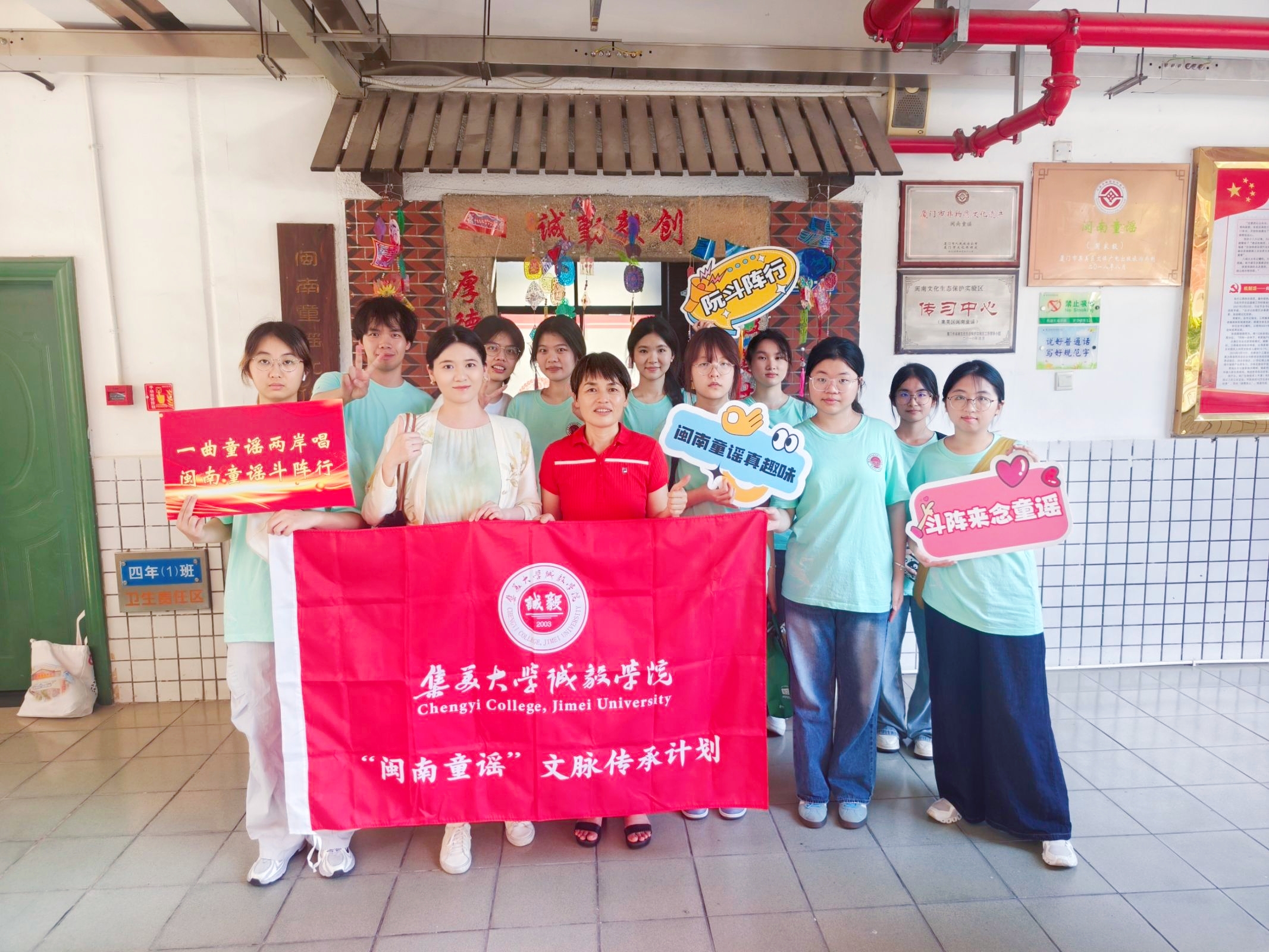同日下午,“阮斗阵行”实践队走进厦门市实验小学集美分校。该校作为集美区闽南童谣传习中心保护单位,自2006年起引入童谣课程,为保护传承闽南童谣传统文化做出了许多探索。厦门市实验小学集美分校多次举办闽南童谣传承推广交流会等交流活动,动员教师群体自主创编童谣,每周开办闽南童谣课程,带领孩子们深入接触闽南童谣的趣味与意蕴,这种常态化的教学安排,使学生能够系统地接触和学习闽南童谣,为童谣的传承提供了稳定的教育平台。