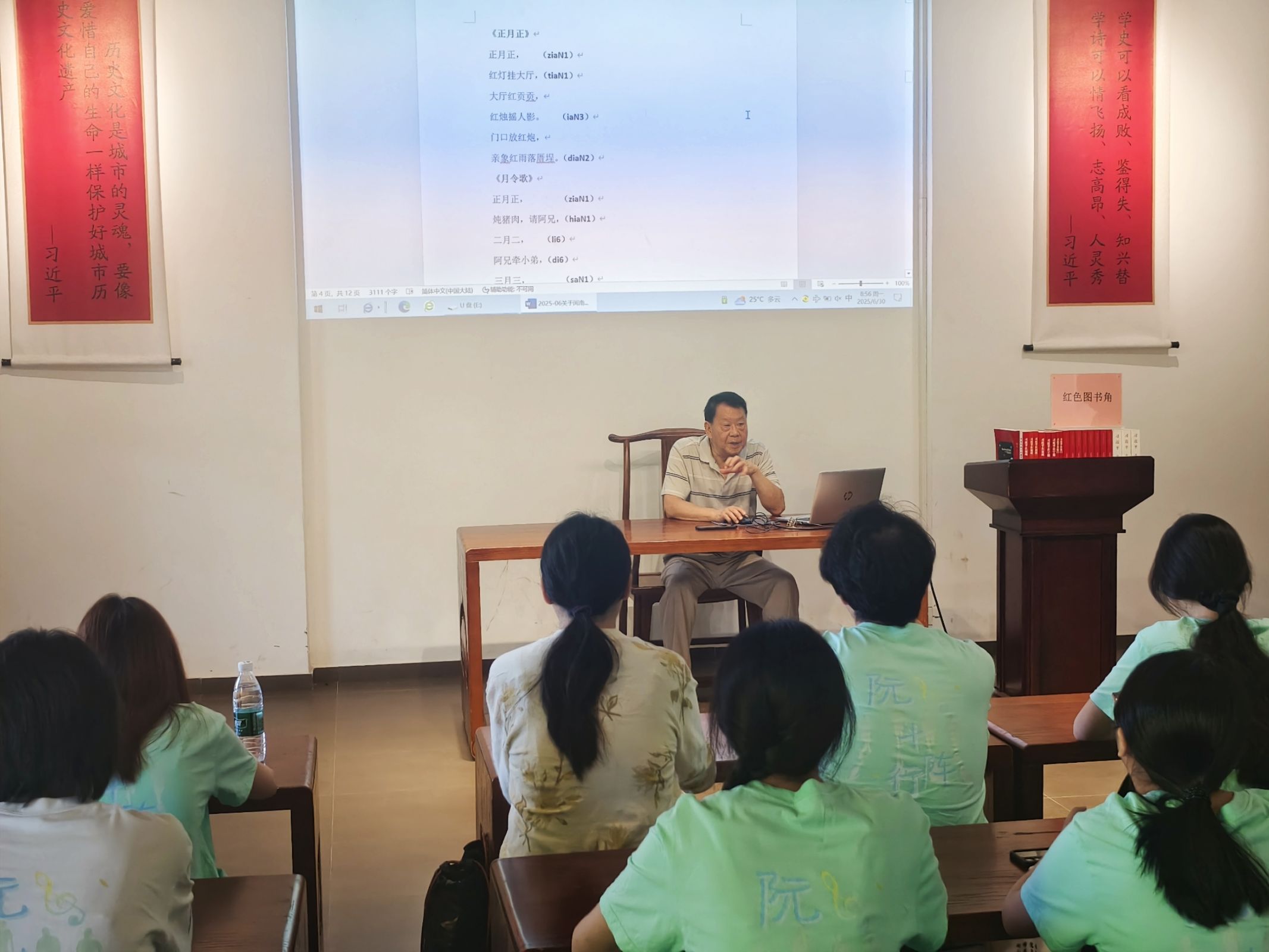 在厦门鸿山书院,实践队拜访了“诗词闽南方言吟诵”非遗传承人胡明宜,并在古朴雅致的讲堂里进行了一场关于传承与创作闽南童谣的文化交流活动。在交流会上,胡明宜老师展示了许多传统闽南童谣以及自创新童谣,其声情并茂的吟诵让队员们身临其境感受传统文化的魅力。此外,他还分享了自己的创作思路与教学心得,对实践队员们提出的问题作了详细解答并寄予深切厚望,现场不时响起热烈的掌声。