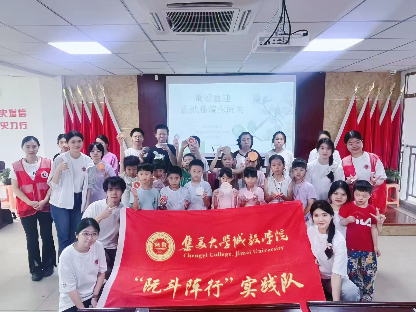 实践队将“藤编”和“盘纸”两项非遗手工内容融入闽南童谣课堂教学,并针对作品的主题和背后的文化象征也进行了充分的讲解。在实践过程中,孩子们都仔细倾听、认真学习,表现出了对闽南特色文化极大的兴趣。有不少孩子表示:“活动让我对闽南话和童谣更加了解”,有的小朋友在活动结束后已经能够完整背诵一首闽南童谣。实践队队员们在此次教学实践中,充分感受到了闽南童谣经久不衰的生命力和魅力,古老的韵律依旧吸引着孩子们天真烂漫的心灵,为闽南童谣的传承与发展播种发芽。
