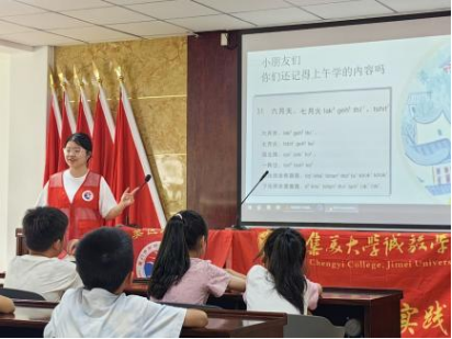 7月6日,"阮斗阵行"实践队于后溪镇崎沟村新时代文明实践站开展闽南童谣教学实践活动。在本次的活动中,实践队结合近段时间对闽南童谣的调研成果与师范专业的相关知识,进行了“童谣+非遗手工”创新课程的教授,获得显著教学效果。在课堂上,实践队员围绕着“节气时令”和“日常生活”为切入点,讲解传授了《六月天,七月火》和《鱼歌》两首闽南童谣,极大吸引了现场的小朋友对闽南童谣的兴趣。在阵阵童谣声中,课堂气氛相当活跃,现场不时响起孩子们的欢笑声。
