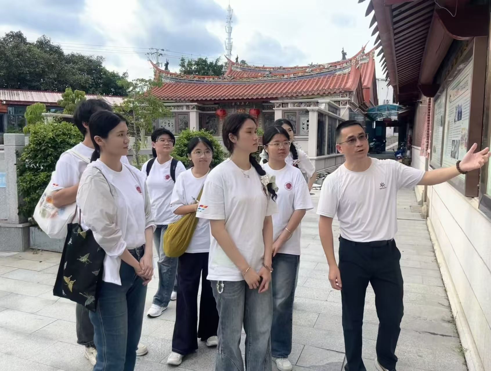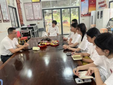 7月6日下午,实践队来到珩山华侨联谊会进行走访调研。在珩山华侨联谊会副秘书长王毅兵的介绍下,实践队员们对传统非遗民俗项目“过桥食公”以及珩山王氏的孝道文化有了更加深刻的认识。“吾家王氏,首重孝悌”,在圣果院内的明代石碑前,王毅兵向队员们详细讲述了珩山孝文化的由来,并分享了一首以“过桥食公”为主题的闽南童谣。