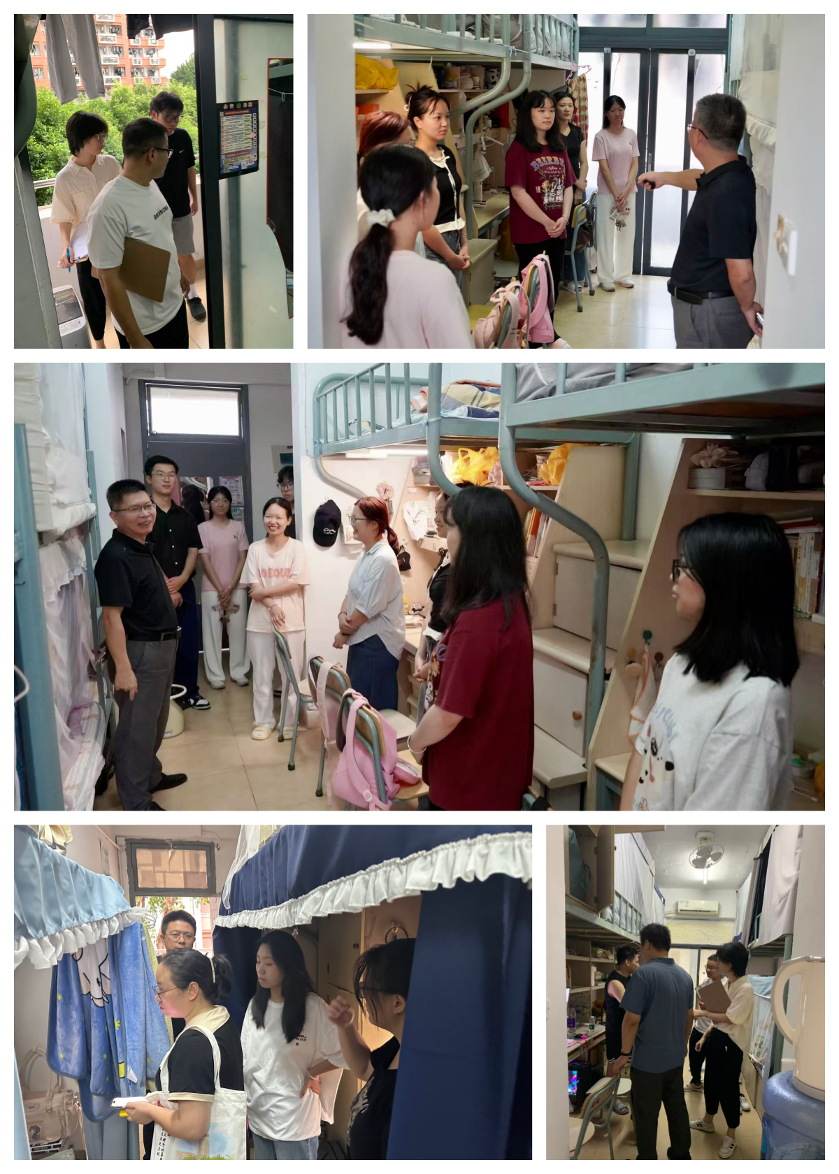 在检查过程中,许弘明与学生进行面对面交流,深入了解学生的学业规划及生活需求,并予以针对性指导。他表示,宿舍安全无小事,要时刻绷紧安全之弦,养成良好的生活习惯,务必做好卫生清洁,严禁抽烟,规范用电。他要求全体学生严格落实各项安全管理制度,从“被动接受检查”转为“主动排查隐患”,增强集体责任感,发现身边安全隐患及时上报,共同守护宿舍安全。与此同时,排查组老师深入了解学生日常需求、肯定内务成果,现场普及消防安全知识,通过分享真实案例提升学生的安全意识,让学生感受到“宿舍如家”的归属感,激发自主维护环境的积极性。老师们还关注学生学业压力、生活困难等问题,并提供针对性建议,借查寝契机向毕业生推送就业信息,将“管理场景”转化为“育人阵地”。