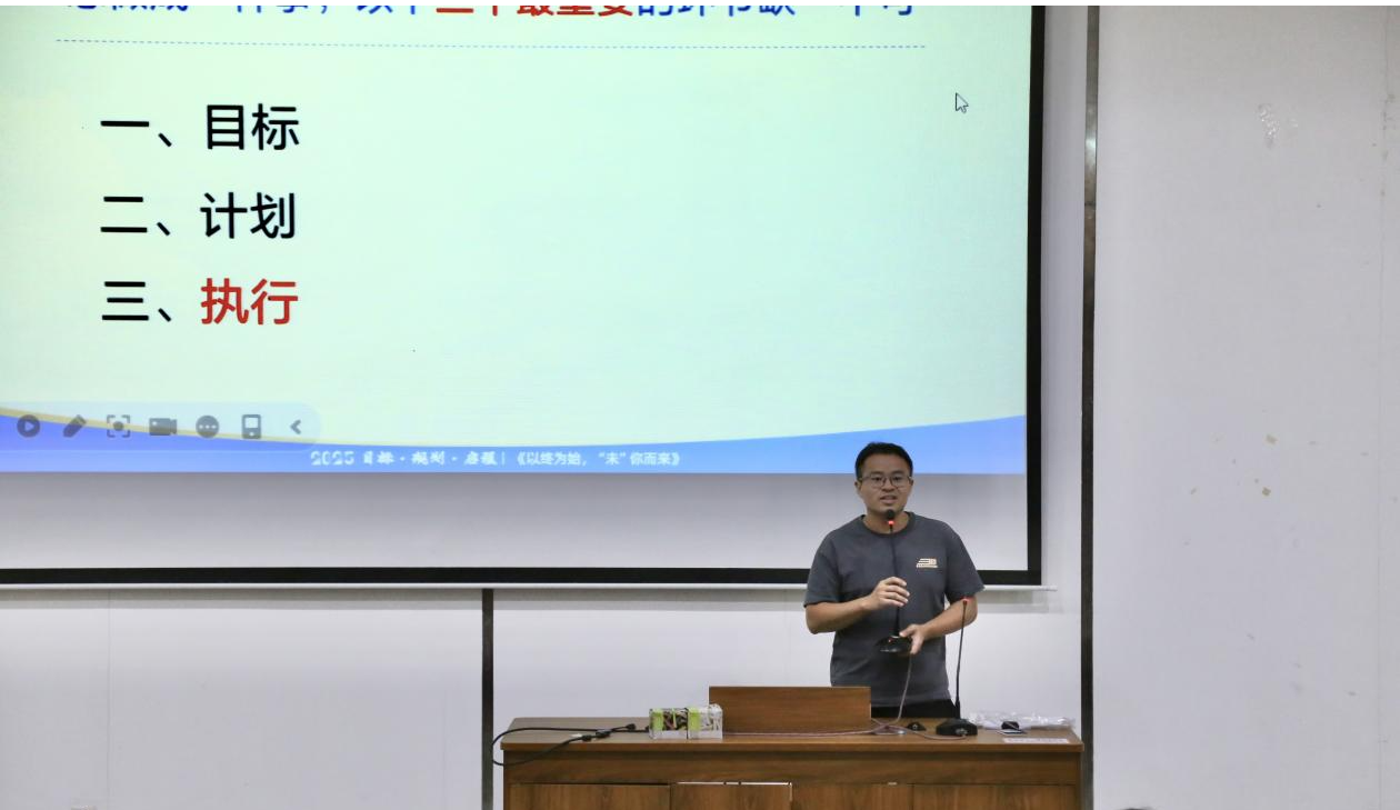 林梦媛结合当前严峻就业形势展开分析,着重强调大学的核心价值在于为学生创造“更多选择机会与更优质就业平台”。而要实现这一价值,关键在于摒弃“大学即享乐”的观念,尽早进行规划,主动付诸行动。随后,陈庆达以“大一筑基、大二巩固、大三抉择、大四执行”为新生梳理出大学四年的战略发展路径,他告诫同学们要做到谋定后动,知行合一,不断提升个人核心素养,完善专业技能知识。