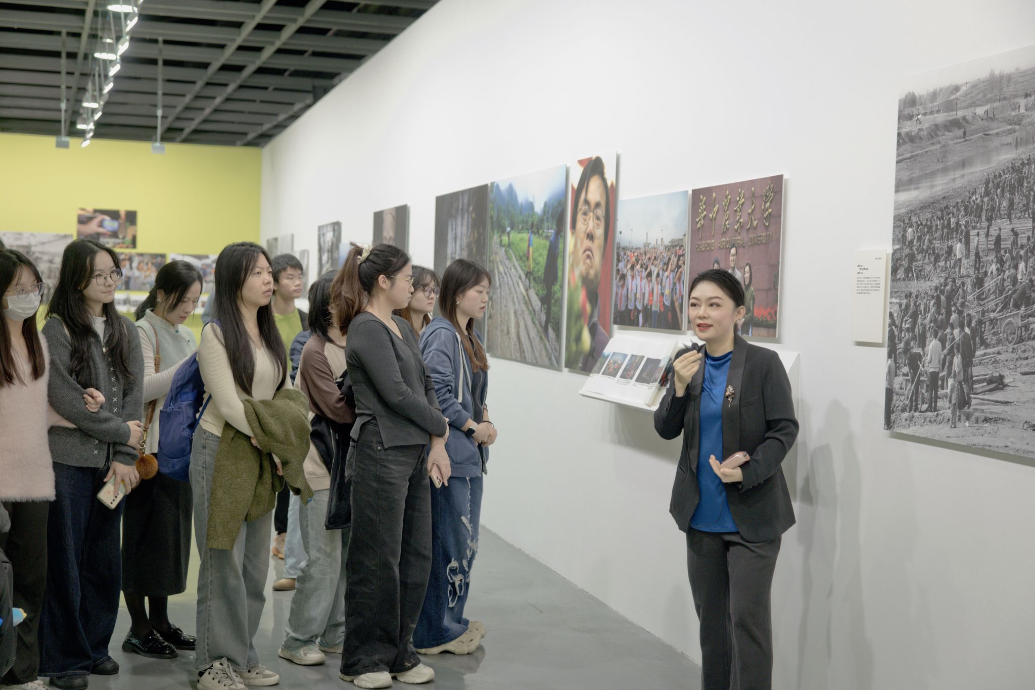 为进一步推进新文科实践育人工作,提升学生的审美素养和人文情怀,引导学生在广阔的社会现实中感受时代脉搏,着力培育时代新人,11月26日,人文学子在第三十届全国摄影艺术展上同上一堂光影里的“大思政课”,展览现场变成了理论联系实际的“移动课堂”。在导览老师的讲解下、在现场沉浸体验中、在影像前的宣讲中,他们成为用眼睛欣赏艺术的观展人,成为用心感悟时代的向上青年,更成为用情传播思想的宣讲者。